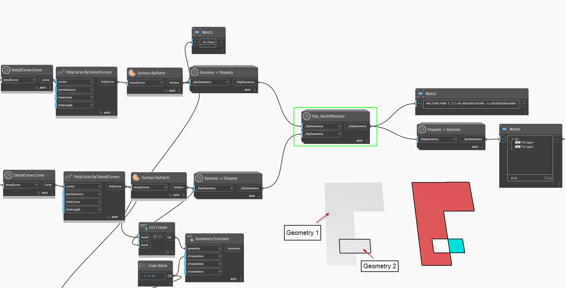 It performs the inverse of the difference function. It subtracts the second geometry from the first geometry, but here the subtracted geometries are applied in reverse.